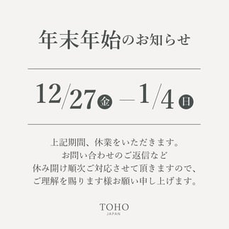 (12/29~1/7までお休みをいただきます。)